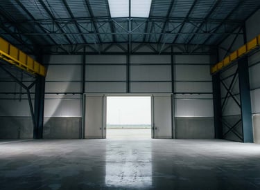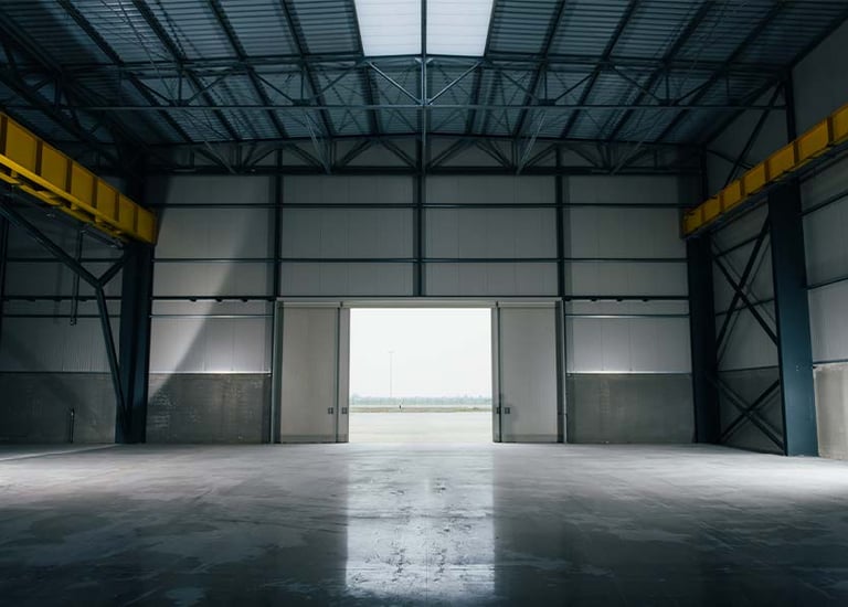Galpão industrial em São José, construído com BIM para eficiência estrutural e entrega no prazo, atendendo às necessidades logísticas.
