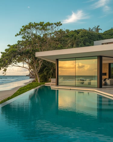 Uma casa de alto padrão em Jurerê Internacional, projetada com BIM para máxima precisão e sustentabilidade, com design moderno e acabamentos de luxo.